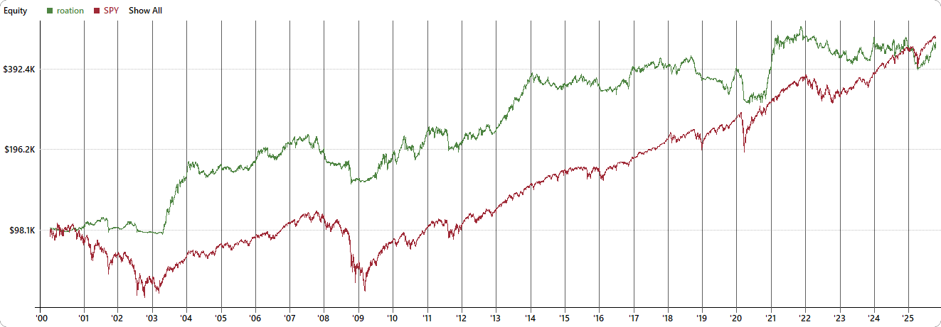 Here’s the equity curve comparison for the top 20% ADV vs bottom 20% ADV.