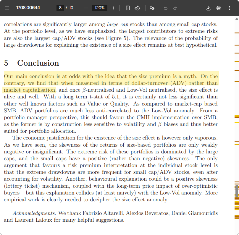 I found this paper (https://arxiv.org/pdf/1708.00644) that argues market cap isn’t the best measure for the size effect. The authors tested average daily dollar turnover (ADV) as a more reliable metric. Dollar turnover = close price × volume.